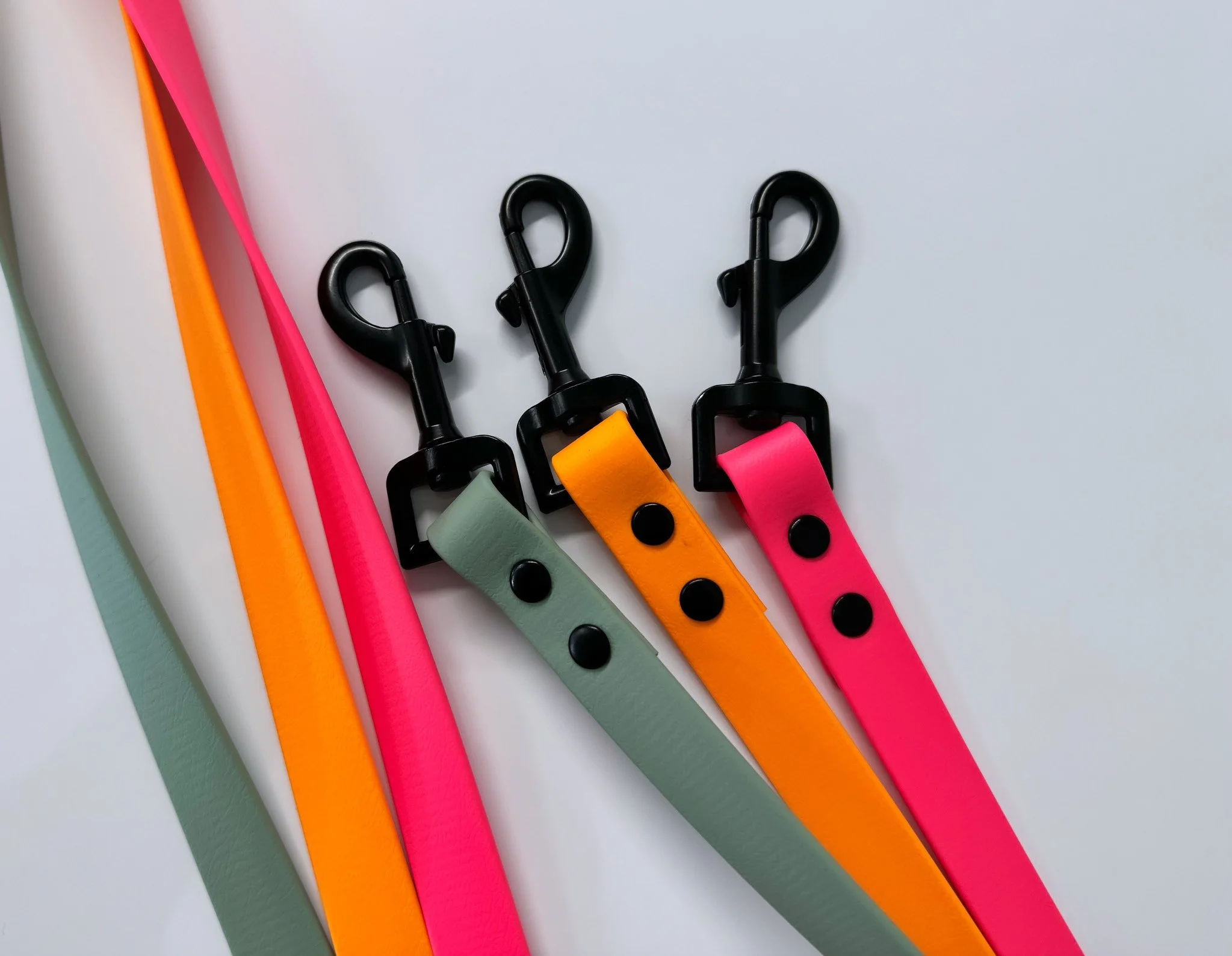 Categories: All Collars Accessories Leashes All | Collars | Accessories | Leashes | 1" double layer custom Biothane dog collar $27.00 3/4" wide BioThane Leash from $25.00 3/4" wide BioThane collar from $18.00 1" wide BioThane collar $20.00 Metal Slide on Name plate $8.00 Circle metal dog tag $6.00 Circle Silicone dog tag from $0.00 Sale Metal/Silicone slide on name plate. $10.00 Purple and Black BioThane ball tug $13.00